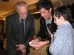 Durante la cena sullo schermo gigante sono passate le immagini di alcuni dei suoi numeri più sorprendenti, come il concerto con il piano volante che volteggiava sull’orchestra e Casanova alla tastiera, come la sua elevazione dal tetto di un edificio sulla testa di chi stava attorno, l’immersione nella vasca in apnea legato mani e piedi.