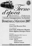 Il successo riscosso da questa insolita gita a Firenze con treno d’epoca a vapore attraverso la ferrovia appenninica “La Faentina” per celebrare il 7° centenario dell’inizio della stesura della Divina Commedia ha premiato il coraggio che il nostro Presidente ha avuto nell’organizzarla nonostante i tantissimi problemi e le incognite che questa iniziativa avrebbe comportato.