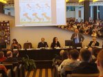A questo punto i ragazzi, a cui era stato fornito un qrcode all’ingresso, si sono collegati rispondendo ad un questionario, i cui risultati sono stati mostrati in tempo reale e commentati insieme sotto la guida del Prof. Cruciani.